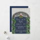 Festive Christmas Eve invitation featuring a festive green and red mistletoe bundle under a homes arch decorated with pine garlands red berries and lights. Add the invitations details and enjoy a fabulous Christmas eve with friends and family.