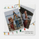 Modern, festive and cheerful Merry and Bright script calligraphy decorated with bright and colourful strings of Christmas lights. Upload three of your favourite family photos and customize and personalize with year and family name to make it unique.