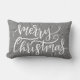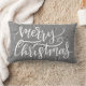 Festive Merry Christmas Black White Gingham Plaid Lumbar Pillow