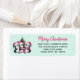 These stylish mint green and pink Merry Christmas return address labels feature three cute penguins decorating a Christmas tree. The template makes it easy to type your address.