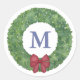 Festive Monogram Greenery Wreath With Red Bow Classic Round Sticker