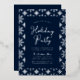 Elegant holiday party invitations featuring your party details in silver foil lettering framed by a silver foil snowflake pattern on a navy background. The snowflake holiday party invitations can be used for a variety of holiday parties. Just change the event name by using the templates.