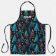 Festive Neon Christmas Trees Pattern Monogram Apron