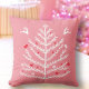 Festive Nordic Christmas Tree Deer Pink Throw Pillow