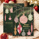 This charming 'Happy Holidays" Christmas greeting card features a delightful hand-painted illustration of retro-style hanging ornaments in shades of pink, green, and red against a deep, festive green backdrop. The design captures the warmth of the holiday season, adorned with delicate snowflakes and traditional ornaments that evoke nostalgia and joy. Perfect for sending heartfelt wishes, the card includes a personal message on the back, making it an ideal keepsake for your loved ones.