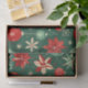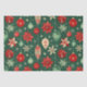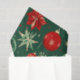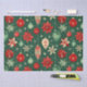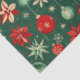 Christmas ornaments and flowers in a festive holiday pattern with green, red, and cream colours