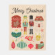 Hand drawn Christmas pattern of Nutcracker and folk art in pastel pink background.