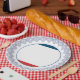 Festive Patterened Border with Red and Blue Accent Paper Plate