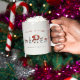 Add you family name or a persons name to create cute personalized mug featuring one watercolor painted santa and four funny snowmen on a creamy background.