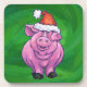 Festive Pig in Santa Hat on Green Coaster