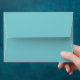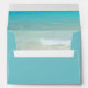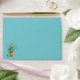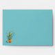 Tropical blue, beach themed Christmas card envelope with festive holiday pineapple design on the front. A beach scene of turquoise water and beach sand is the image inside the flap. Outer colour is dark sea blue colour. Size A7 for 5x7 inch cards, or change the size, but this design may not work on all envelope sizes.