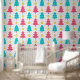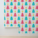Festive pink blue Christmas tree pattern tiled Wallpaper