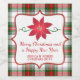 Festive full size Christmas wine label done in the red, green and white Stewart King George Tartan Plaid pattern. A red and white polka dot framed decorative white text area, in the middle of the label, has a pretty poinsettia done in a foil look. Personalize the red text for your holiday party or gift giving needs.