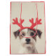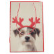 Festive Pup with Reindeer Antlers Medium Gift Bag