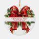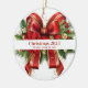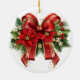 Festive Red and Gold Christmas Bow Ceramic Ornament