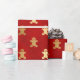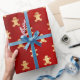 Festive Red and Gold Foil Winter Gingerbread Man Wrapping Paper