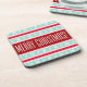 Festive Red Aqua Pattern "Merry Christmas" Coaster