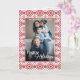 Chic simple Holiday season greeting card with a pretty and modern script font on a trendy contemporary Holiday season classic red and black Fair Isle motif pattern design. With the option to customize or personalize with a photo of your choice on the front, and a personal message on the inside. Vintage, yet modern classy design for the lover of winter and December holiday themes. Available on a variety of modern crafts and office products. Such as wrapping and tissue paper, gift tags, bags and favour boxes, stickers, ribbons, stationery, and envelopes.