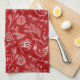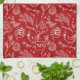 Step into the festive spirit with our elegant personalized kitchen towel, featuring the exquisite artistry of Nathalie Portet. In this rendition, the intricate ink drawings of perched cardinals, pinecones, pine needles, and winter berries are beautifully presented in an all-white pen stroke, creating a striking contrast against a vibrant holiday red background.