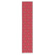 Festive red Christmas table cloth runner, with a pattern of golden snowflakes and green stylized Christmas trees. Lovely addition to any table for the holidays. Customize to add your own text.
