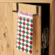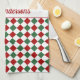 Personalized Festive Red Green Checked Christmas kitchen towel.