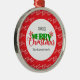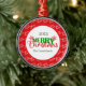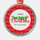Celebrate the holidays in style with this festive red green Merry Christmas round ornament. Displaying a bold "Merry Christmas" message in green and red lettering, accented with delicate snowflakes for a cheerful seasonal touch. The customizable design includes the year 2023 and your family name, making it a unique keepsake ornament to treasure for years to come. Surrounded by a repeating "Merry Christmas" script on a bright red background, this ornament brings a classic yet modern holiday look to your Christmas tree décor.