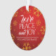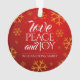 La façon unique de souhaiter un merveilleux Noël à votre famille et à vos amis! Cet ornement festif comporte les mots "amour, paix et joie" en serif et en lettres de script entourés de flocons de neige orange scintillants sur un arrière - plan rouge chaud. Customisez avec le nom de famille et/ou le texte de votre choix. Design © W.H. Sim. Voir plus sur zazzle.com/expressionsoccasions