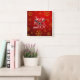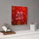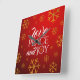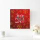 Get your home in the mood for Christmas with this festive clock, which features the words "love, peace, and joy" in serif and script lettering surrounded by twinkling orange snowflakes on a warm red gradient background.