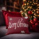 Festive Red Merry Christmas Embellished Decorative Throw Pillow