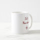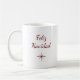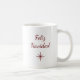 Festive Christmas snowflake holiday coffee mug, with red customizable lettering and a white background. A fun addition to your winter holiday beverage.