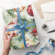 Lovely vintage Christmas ornaments in predominantly red and light yellow grace these wrapping paper sheets. They have the look of hand-painted details on the baubles and are amidst and nestled in pine tree boughs along with seasonal red berries in these watercolor patterns for your wrapping paper projects.