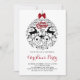 Invite guests for some holiday cheer with this fun and festive Christmas party invitation. It features a whimsical and ornate ornament of holiday flowers, snowflakes and reindeer. Personalize by adding names, date, time and other details. This black modern Christmas party invitation is available in other cardstock.