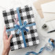 Festive Rustic Black White Gingham Plaid Pattern Wrapping Paper