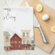 add any name to this stunning christmas kitchen towel featuring a santa flying in his sleigh with his reindeers over a beautifuly detailed street , this towel would be ideal for any person that loves cooking at christmas.
