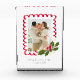 Casual style with a modern feel, this custom, decorative acrylic block features a favourite Christmas photo inside a pretty, red, scalloped frame and accented with an illustration of a green holly branch with matching red berries and delicate creamy white flowers. The textural and hand-illustrated feel adds whimsy and artisanal elegance while the approachable hand-writing style fonts keep it low-key. Give as gifts to grandparents, parents, nannies, spouses and others to remember a special time of the year.