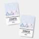 Name badge with a magical Christmas design. Christmas tree decorations sitting together on some white snow. The background has a white bokeh (blurred lights) pattern with falling snowflakes. Perfectly captures the wonder and magic of Christmas.