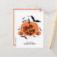 Happy Halloween! Send spooky holiday greetings to your family and friends with this customizable Halloween postcard. It features cute and spooky pumpkins and bats with modern typography. Personalize this custom Halloween postcard by adding your details. This pumpkin Halloween postcard is available in a variety of cardstock.