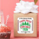 A vibrant square sticker featuring a cheerful Christmas design, perfect for holiday gifts. The sticker highlights the message of a farm-fresh Christmas tree.