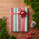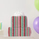 Brighten up your holiday gifts with this fun and festive striped wrapping paper. Joyful geometric Christmas pattern with a colourful mix of decorated stripes, jingle bells, and Christmas trees. Original artwork by Marketa Stengl.