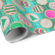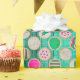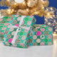 Festive Sugar Cookies on Bright Teal Wrapping Paper