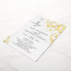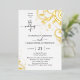 Festive and fanciful real foil and white wedding invitations. Decorative swirls with leaves and roses, and beautiful fonts with swirl ligatures. Simple, modern and classic clean wedding invitation, with your custom photo, black and white swirls and wedding details and further information on the back side of the card.