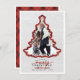 This holiday photo is perfect for any family looking for a unique photo card to send to their loved ones these holidays. This design features a photo frame in the shape of a Christmas tree and a border of red and black festive tartan plaid on a white pine wood and snow background. Below the tree is a gorgeous text composition with the greeting "we wish you a Merry Christmas with love from" and then your family name and year.