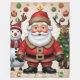 A festive design with a snowman, Santa, deer, and a decorated Christmas tree, set against a golden, dotted floral background, evoking warmth and holiday magic. "Original Image was generated by Meta AI. AI generated artwork. Licensed under CC BY-SA 4.0."
