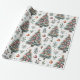 Delightful wrapping paper showcases beautifully decorated Christmas trees adorned with ornaments, berries, and leaves, creating a joyful holiday atmosphere perfect for gift-giving.