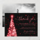 Elegant & Festive Xmas Tree Red Black Wedding "Thank You" Card template, featuring thank you text, glitter lights, Christmas Tree, modern typography script & a custom photo.