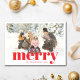 Wish your friends and family a merry year with this modern minimalist style holiday card with large festive retro red typography, personalized with your photos.