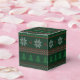 A vintage fir tree and argyle pattern above your personalized text on a custom ugly Christmas sweater holiday party favour box. Retro festive boxes with a green and red Xmas design.