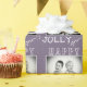 Festive Violet White Typography Christmas Photo Wrapping Paper. Violet background with snowflakes and white Merry, Happy, Jolly typography with a custom photo - insert your favourite photo into the template and make your personal unique Christmas gift.
