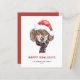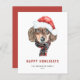 Happy Howlidays! Send your holiday wishes to family and friends with this customizable holiday card. It features a watercolor beagle wearing a Santa hat. Personalize this beagle holiday card by adding your details. This dog Christmas card is available on other cardstock.