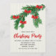 Festive Watercolor Greenery Red Bow Christmas Party Invitation.